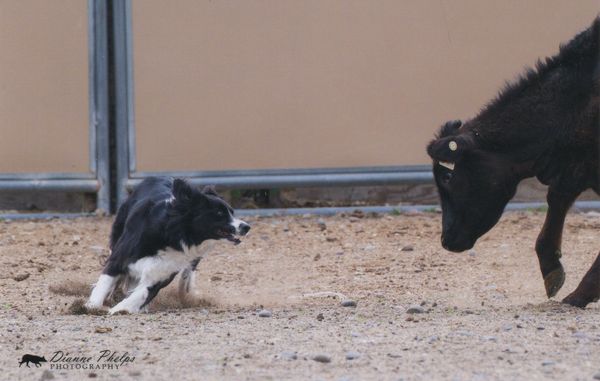 Meg enjoys working in Large Flock Trials, Arena Trials, Ranch Trials and French Trials. This little girl will sort a small pen or she'll cover stock in the field.